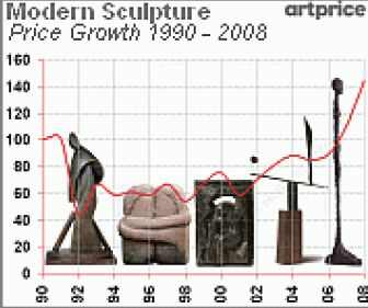 但也不必太悲观,也有一组数据令人欣慰。根据 2007年底的一份统计报告,2007年达到了一个现代雕塑的新高度,雕塑品的价格比绘画作品的价格上涨得更为迅速 ——2007年,雕塑品的价格达到了新高,在15年内增长了整整100%。(图2)最具有代表性的是著名艺术家毕加索,他的青铜雕塑《Dora Maar》,在2007 年11月的苏富比拍卖会上以26,000,000 美元的价格公开拍卖,这座雕塑的主人公形象也成为了现代艺术中最令人向往的女性。不止毕加索,像朱里奥·冈萨雷斯和巴勃罗·卡加洛等艺术家的雕塑作品也出现了令人称奇的惊人增长,其中前者相对于10 年前自己的作品价格增长了350%,后者则是整整四倍于过去的个人最高纪录。国际雕塑市场自身确实在进行着飞速的进步和巨大的变化,这使我们拥有了少许期望。