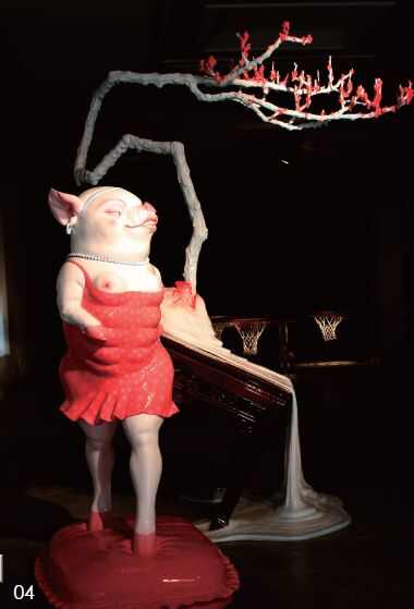 英文里有一个专门的名词“ambiguity”去指这种语义的悖论和矛盾的多义性。这是后现代主义的惯用手法之一。在今天的中国,后现代主义风行的时候,难得的不是运用这种“ambiguity”的模式,因为大凡头脑有点灵活性的中国人都能领会这种玩世不恭的时尚威力。重要的是,能够把这种解构凝固在严肃的批判的层次上,换句话说,调侃和玩世不恭如果只是一种姿态或者表情本身,那它就仅仅是玩世不恭本身而已,它没有让观者进入理性思考层次的力量。所以,在表情的玩世不恭和哲学批判的玩世不恭之间有一个“界”,真正的解构艺术家的工作就是要去发现和表现这个“界”。如果,艺术家把怪诞和反讽放到表情的玩世不恭一边,那么他在当下只是一种媚俗生产,而不是严肃批判。通常,媚俗和批判只差半步。所以,我们可以用这个标准去判断这几位艺术家的雕塑作品在这个“界”上的清晰度或者暧昧性。