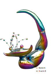 陈志光强调作品的工艺制作,也体现了《易经》另外一种美学概念,就是“离 ”。《易经》中的离卦和古代工艺美术、建筑艺术都有联系,宗白华先生在论述“离”时谈道:“离者,丽也”,即附丽在器物之上的东西是美的,器具的雕饰具有美感,离就是附丽和美丽的统一。陈志光的雕塑是花鸟画附丽在不锈钢上,一方面是雕塑之美,另一方面则是水墨画本身之美。与此同时,宗先生指出,“离也者,明也”, “明”古字,一边是月,一边是窗。而离卦本身形状雕空透明,同窗子有关。离卦的美学表明人与外界既有隔又有通,这是中国古代建筑艺术的基本思想。陈志光的作品要表达的正是这种既隔又通的空间感,传统花鸟图像的格调变成了一种理想化的境界,这是“隔”,而镜面不锈钢反光所形成的实与虚的融合便是“通”。此外,由于“离”就是丽,丽加人旁成“俪”,有并偶之意,因此陈志光在作品中的对偶、对称、对比等对立因素也是离卦中所含的审美因素。